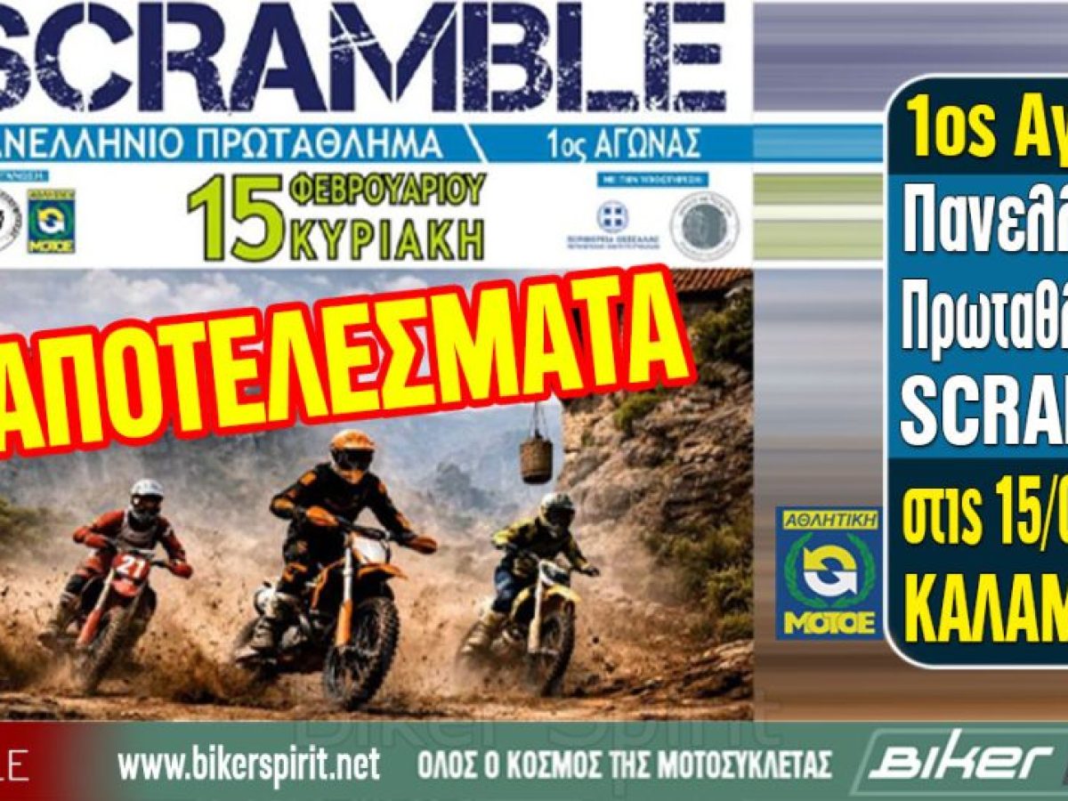 The post ΑΠΟΤΕΛΕΣΜΑΤΑ 1ου Αγώνα Πανελληνίου Πρωταθλήματος SCRAMBLE – Καλαμπάκα appeared first on Biker Spirit magazine.