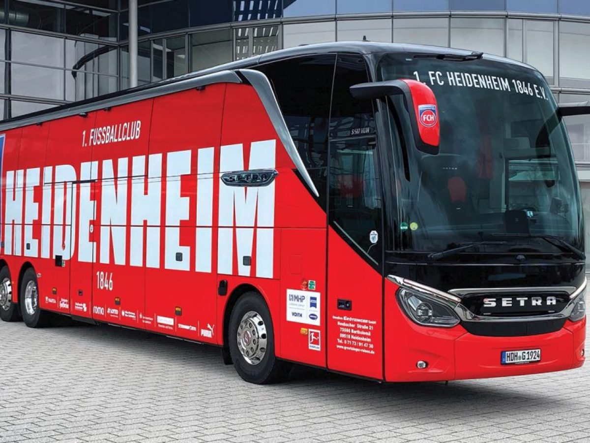 Η Setra ανακοίνωσε την παράδοση δύο νέων, ξεχωριστών διώροφων πούλμαν Setra, στο ταξιδιωτικό γραφείο Unser Roter Bus GmbH και την ποδοσφαιρική ομάδα της Μπουντεσλίγκα 1. FC Χάιντενχαϊμ.