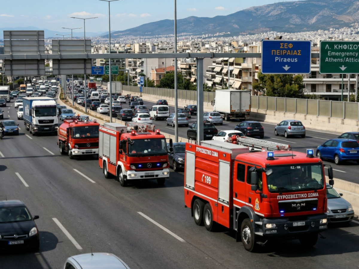 Φορτηγό φλέγεται στη μέση της λεωφόρου Κηφισού