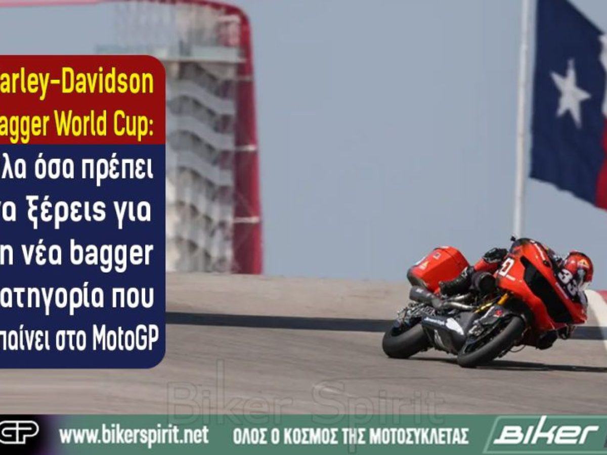 Η Harley-Davidson κάνει το μεγάλο βήμα από τα αμερικανικά πρωταθλήματα, οι bagger μοτοσυκλέτες περνούν στη διεθνή σκηνή ως επίσημη support κατηγορία του MotoGP. Το Harley-Davidson Bagger World CupΜιλάμε για αγώνες με βαριά, φουλ φέρινγκ cruiser που ξεπερνούν τους 200 ίππους, ένα θέαμα εντελώς διαφορετικό από ό,τι έχουμε συνηθίσει στο paddock. Η νέα one-make κατηγορία ακολουθεί τη φιλοσοφία του αμερικανικού King of the BaggersΣτην αγωνιστική της μορφή όμως:Η πρεμιέρα γίνεται στις 27 Μαρτίου στο Circuit of the Americas