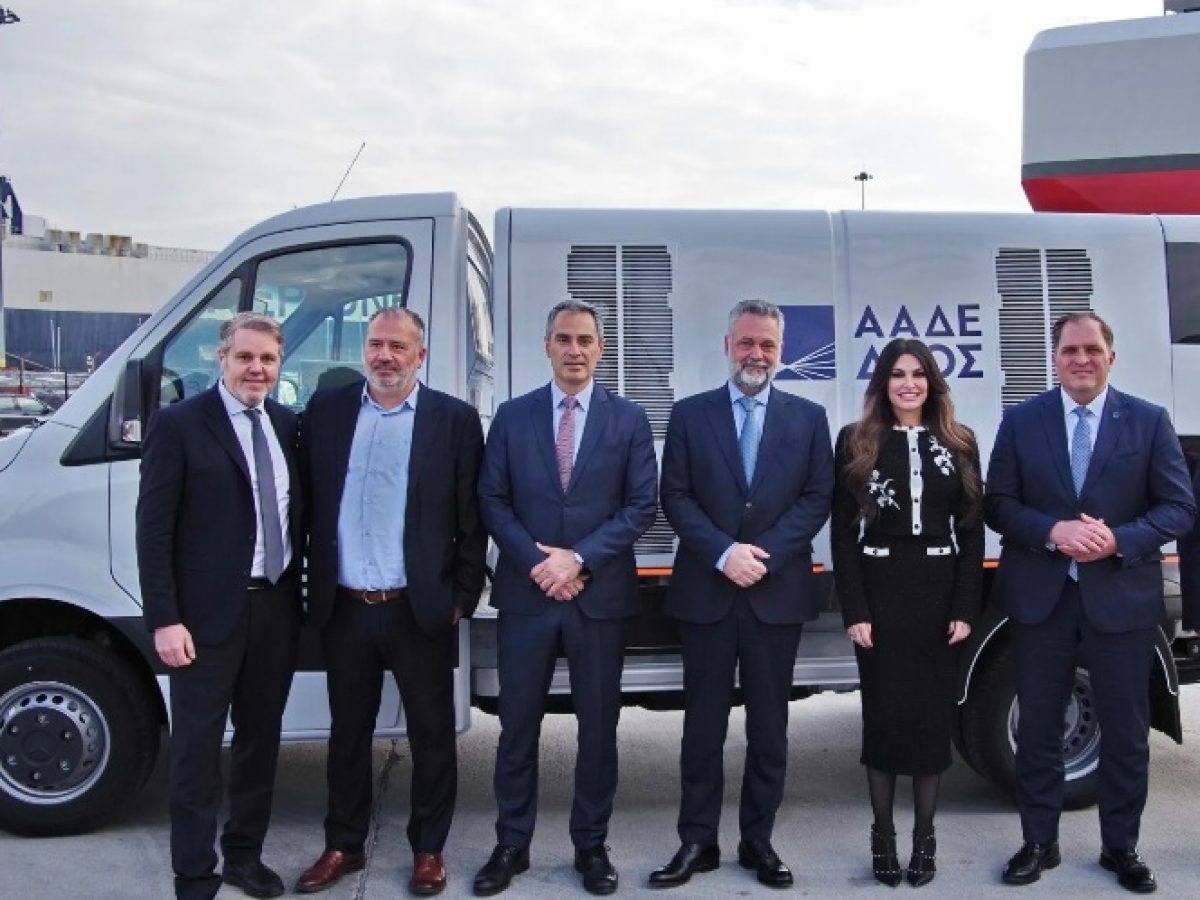 Ο πρωτοποριακός αυτός εξοπλισμός, που θα χρησιμοποιεί η Τελωνειακή Αρχή της ΑΑΔΕ, παρουσιάστηκε χθες σε ειδική εκδήλωση στον Οργανισμό Λιμένα Πειραιά παρουσία της πρέσβεως των ΗΠΑ στην Ελλάδα, Kimberly Guilfoyle, του Διοικητή της ΑΑΔΕ, Γιώργου Πιτσιλή, του Διευθύνοντος Συμβούλου της Κοινωνίας της Πληροφορίας, Σταύρου Ασθενίδη και του Γενικού Διευθυντή Επιχειρηματικής Ανάπτυξης της ΓΕΚ ΤΕΡΝΑ, Εμμανουήλ Μουστάκα.