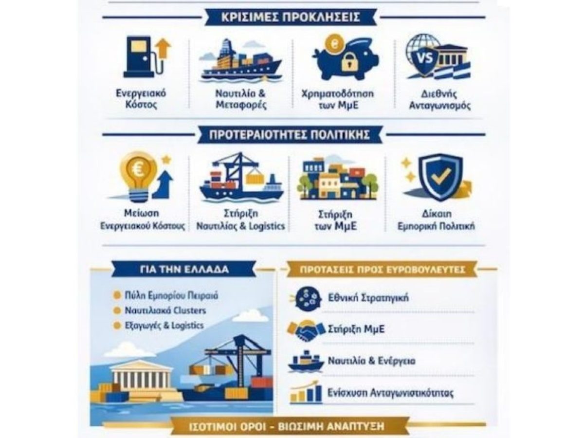 Το υπόμνημα αναφέρεται στη βιώσιμη ανάπτυξη με ισότιμους όρους σε εμπόριο, βιομηχανία, ναυτιλία και υπηρεσίες, καθώς και τη τελωνειακή απλοποίηση σε όλη την εφοδιαστική αλυσίδα. Η πρωτοβουλία του Ε.Β.Ε.Π. έλαβε χώρα σε μια περίοδο που χαρακτηρίζεται από τη συνεχιζόμενη εμπλοκή των ΗΠΑ στον πόλεμο Ισραήλ με Ιράν και τις αυξημένες γεωπολιτικές εντάσεις στην Ουκρανία, τη Μέση Ανατολή, τον Περσικό Κόλπο και την Ερυθρά Θάλασσα, με υψηλό ενεργειακό κόστος, διαταραχές στην εφοδιαστική αλυσίδα και εντεινόμενο ανταγωνισμό από τρίτες χώρες.